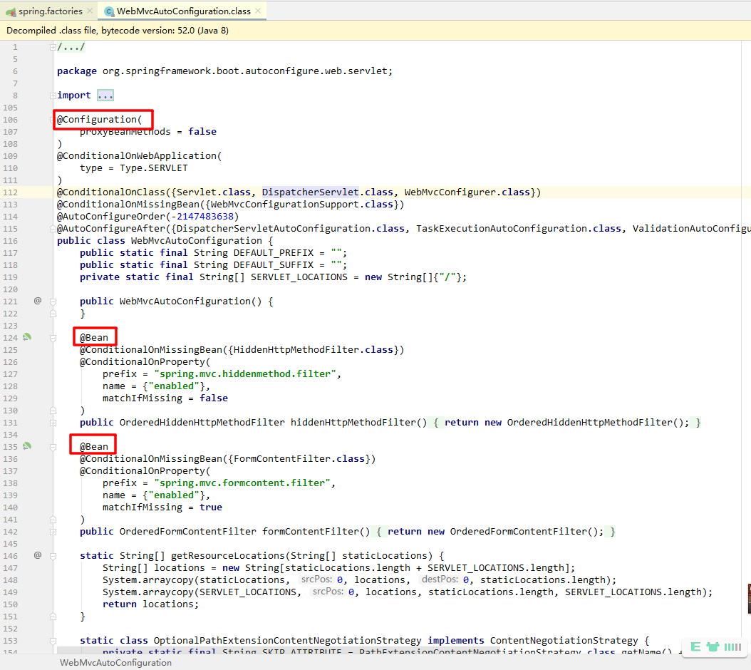 自动配置类随便找一个打开看看,如 :WebMvcAutoConfiguration