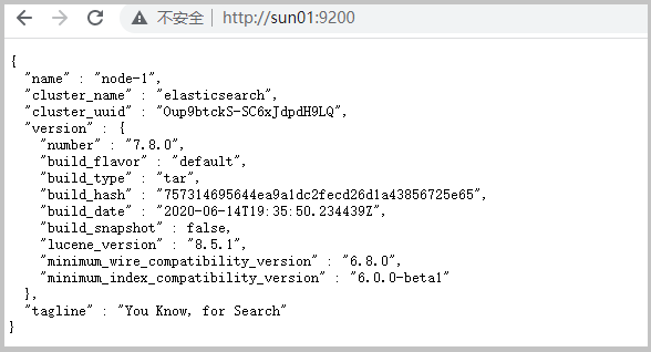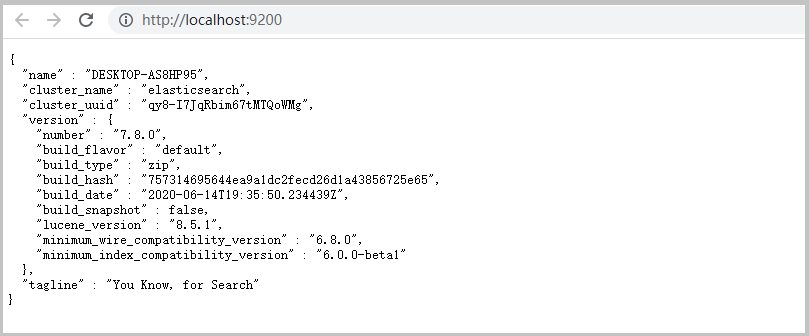打开浏览器(推荐使用谷歌浏览器),输入地址:http://localhost:9200,测试结果